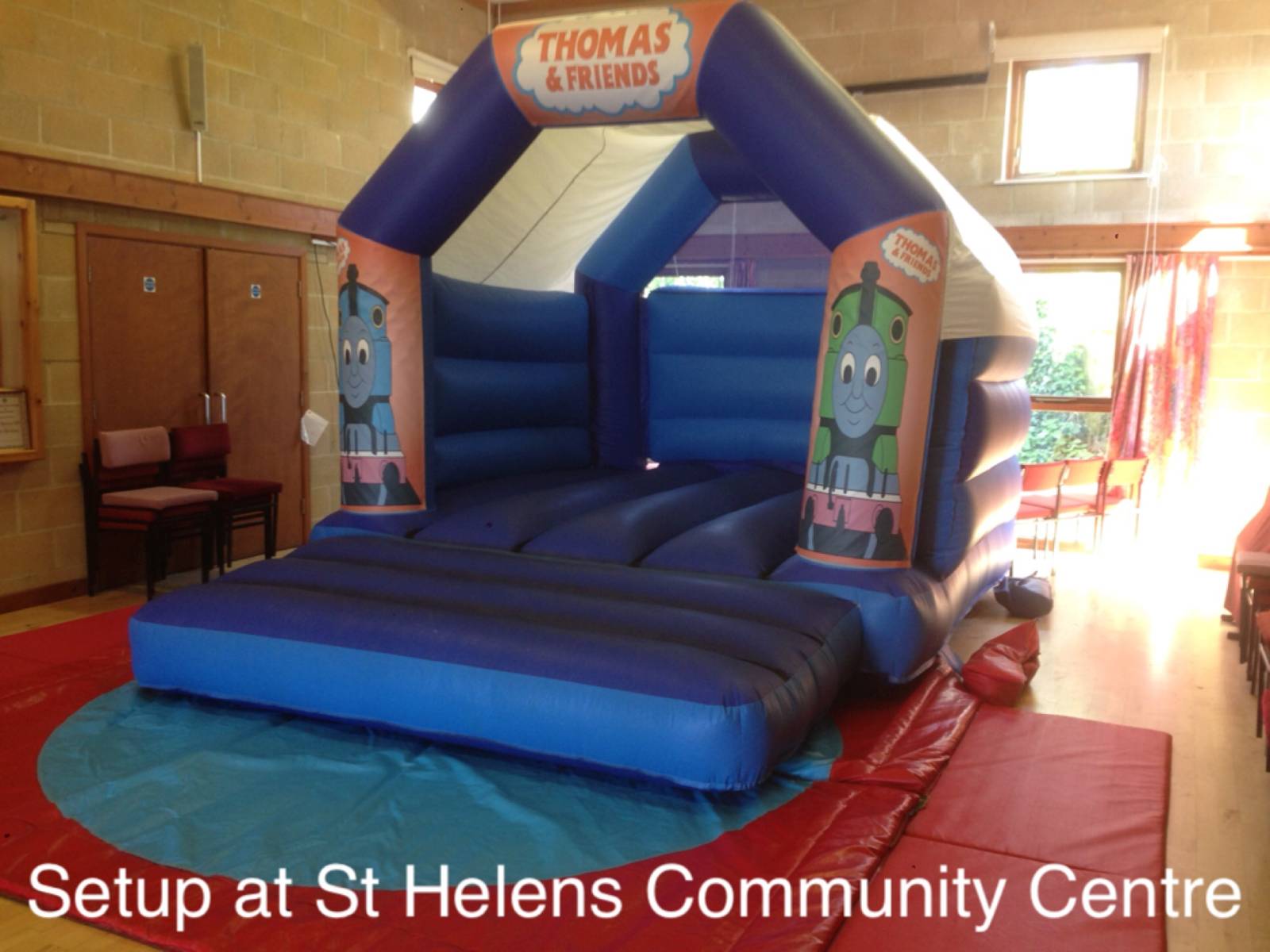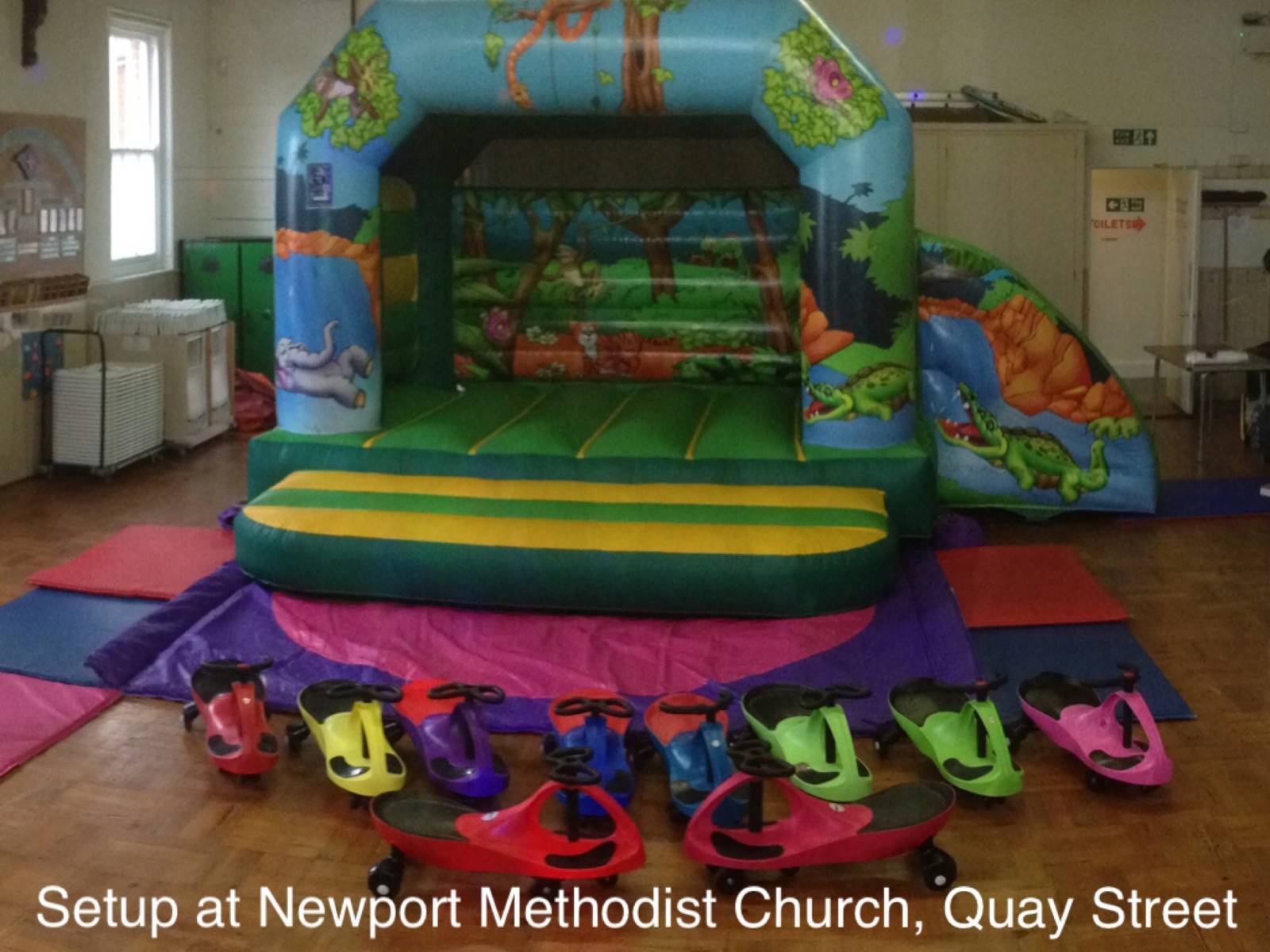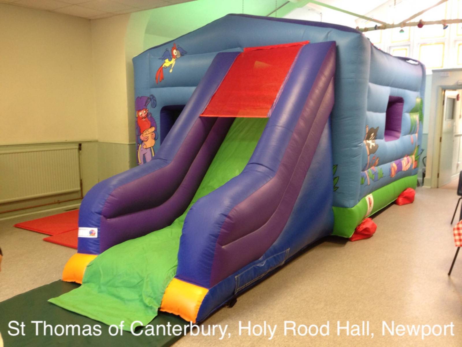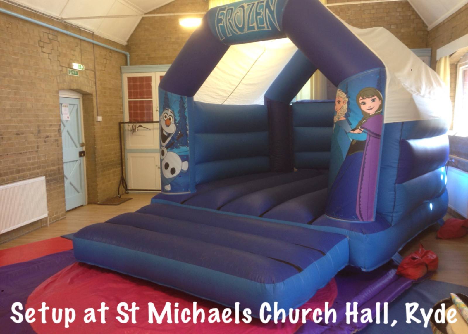 This hall will fit our Rainbow toddler bounce and slide. Please note that any bouncy castle setup in this venue will take up 50% of the hall space or more and so is suited to smaller parties only. There is a small kitchen area. No parking is available onsite but there is usually road parking available.