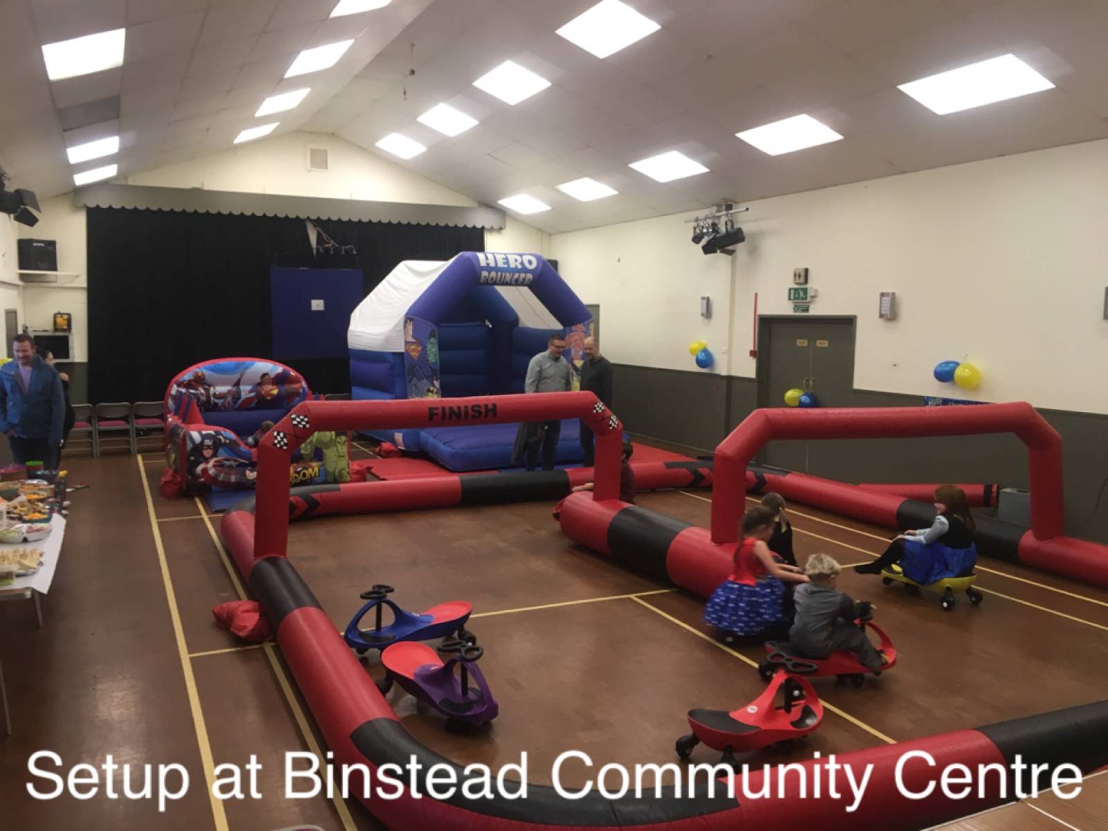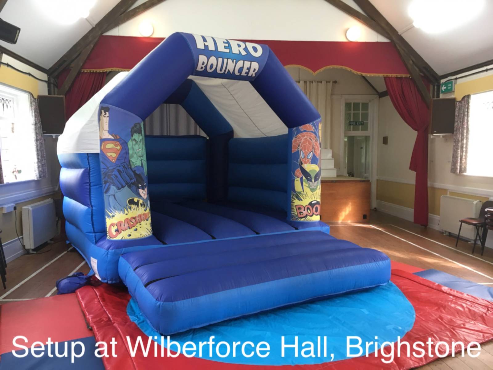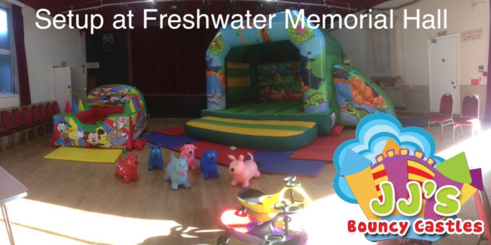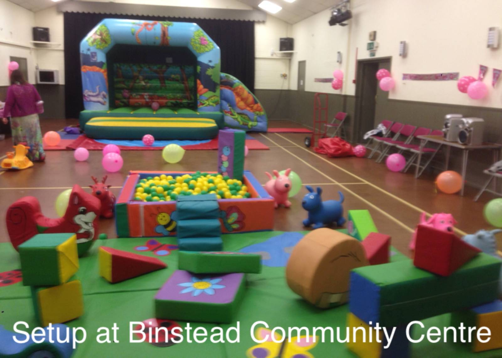 This hall cannot fit any of our bouncy castles due to the low ceiling but can fit soft play and inflatable ball pools. Good access. Suitable for smaller parties.