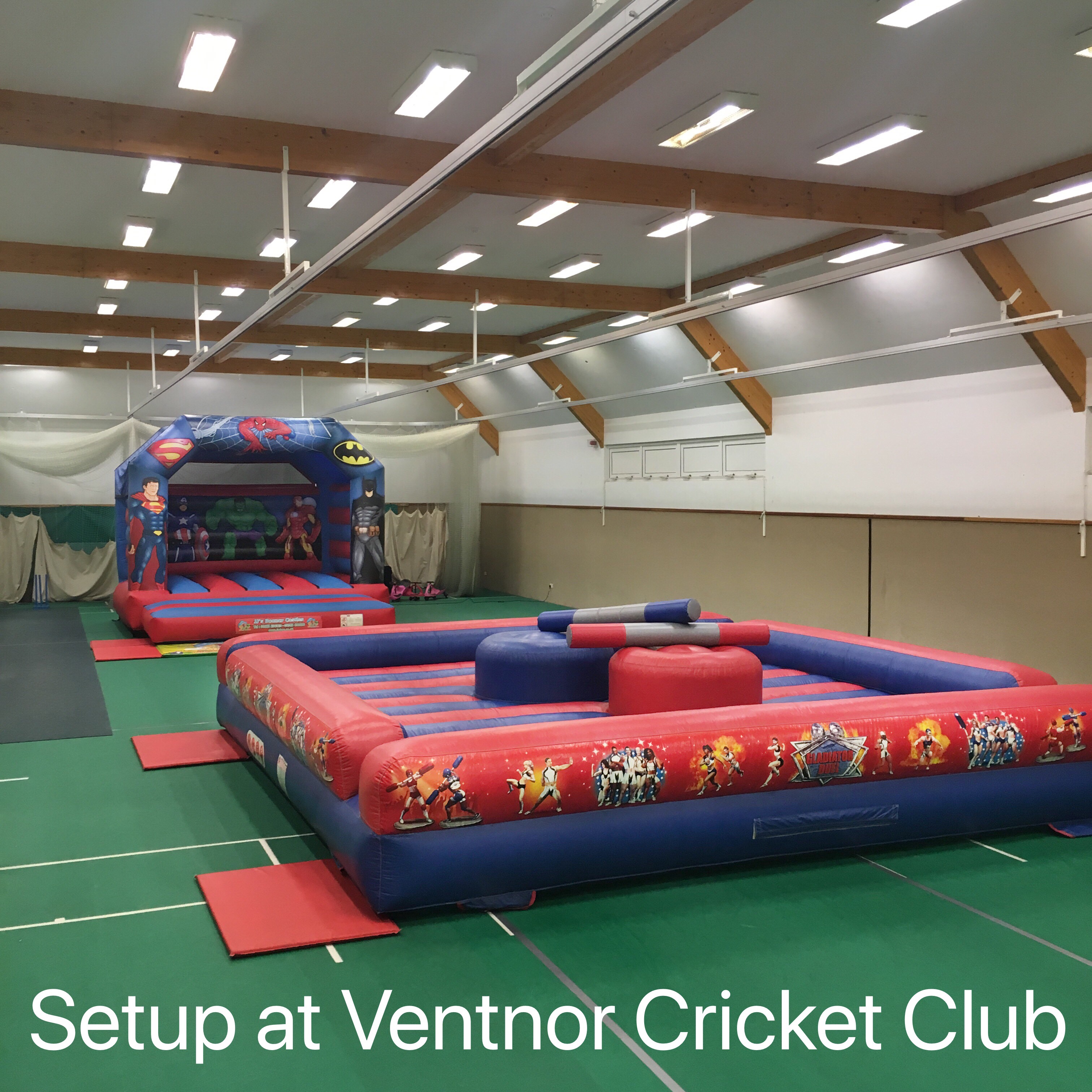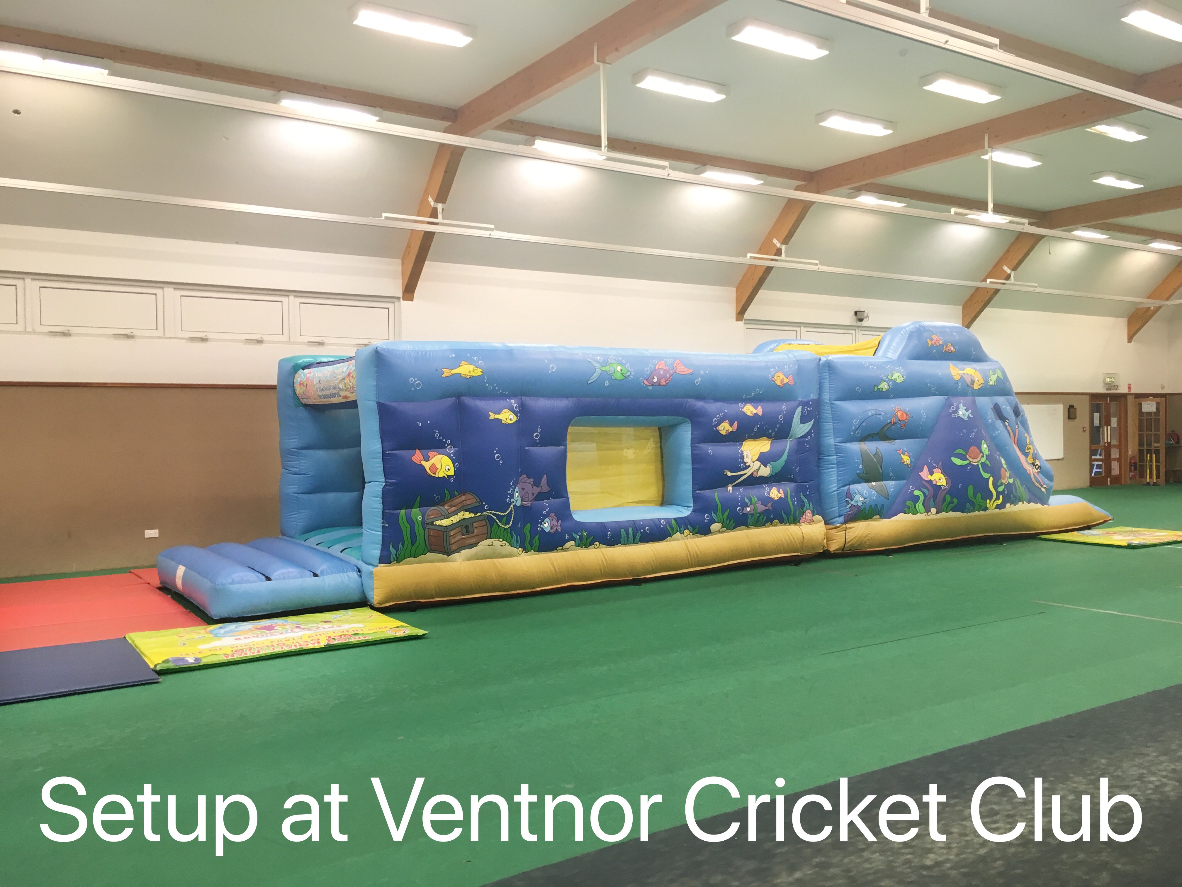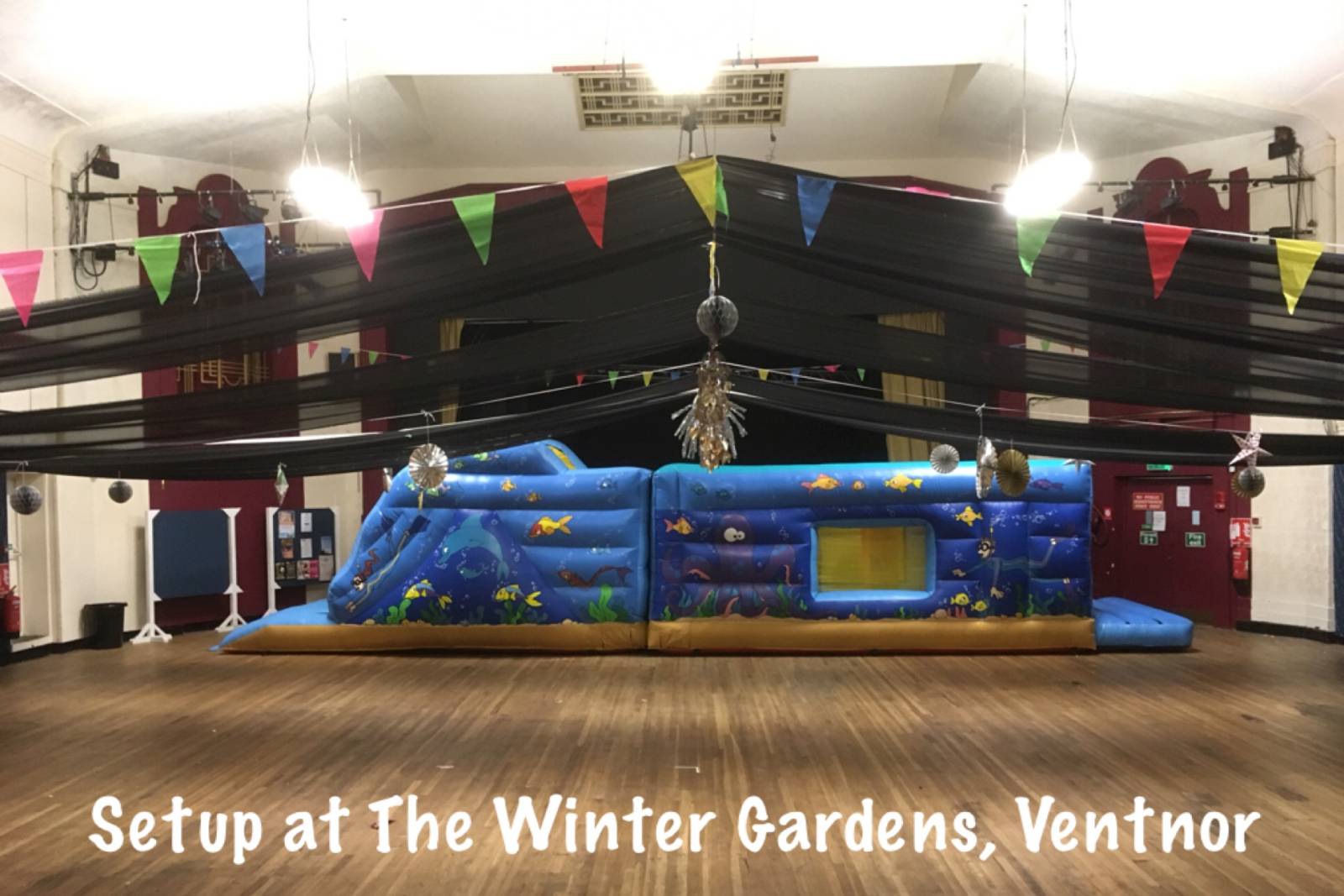This hall will fit any of our hire items except our adult castles and Obstacle Assault Course.