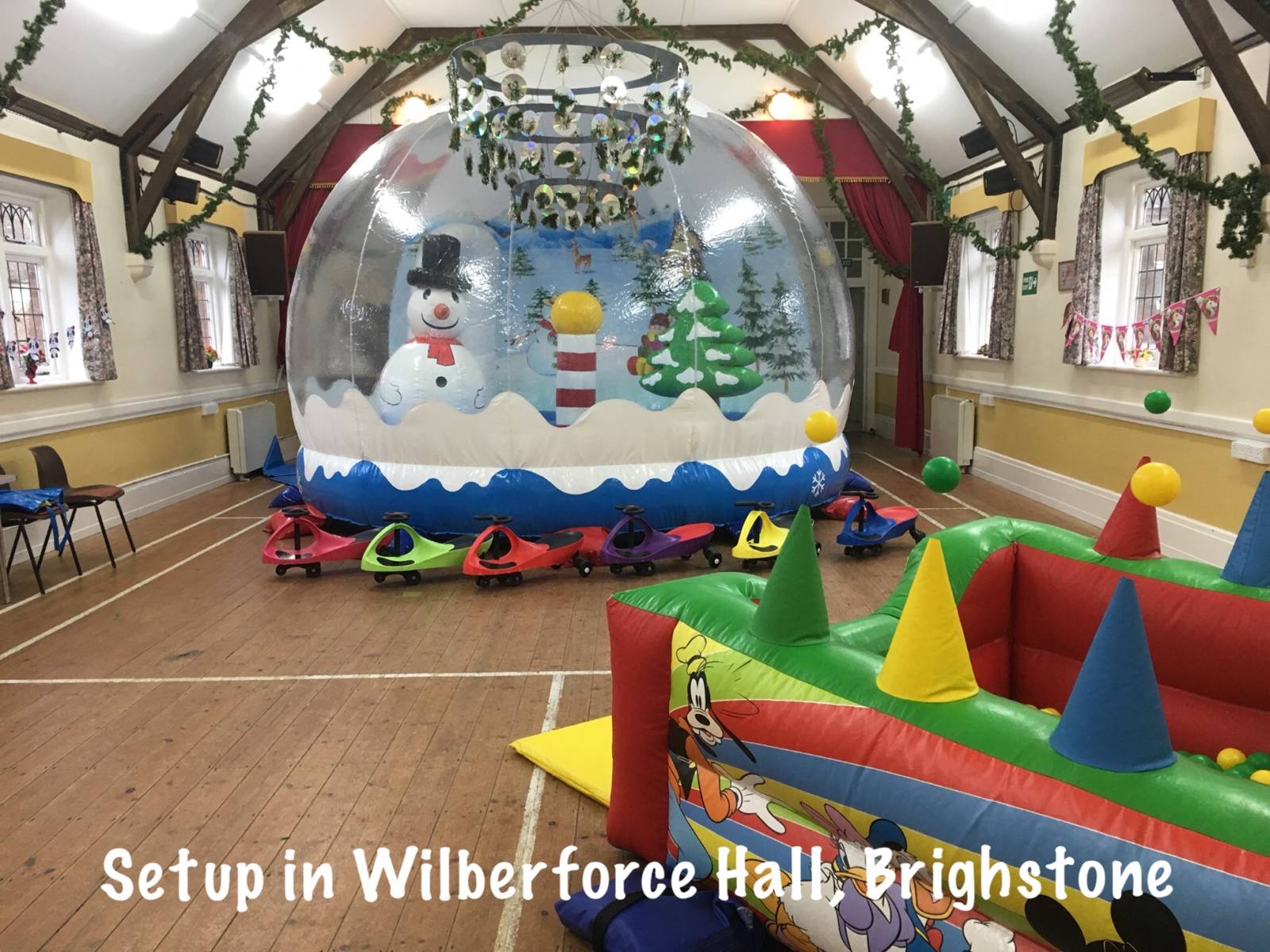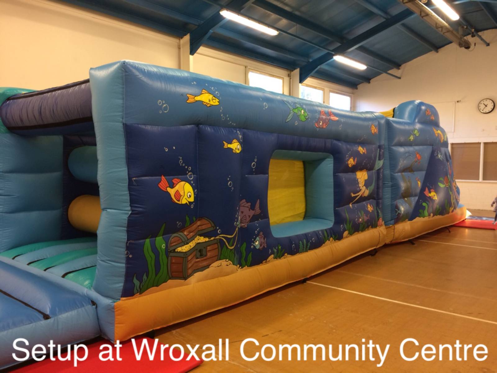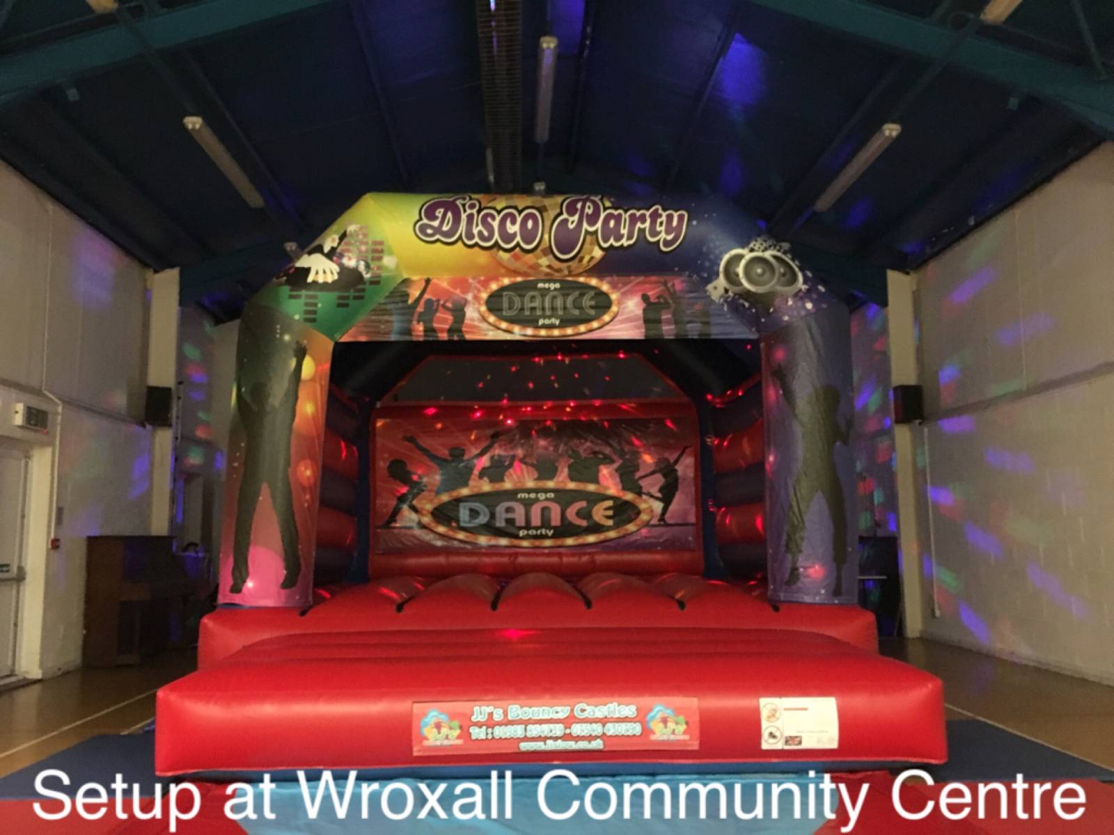This hall will fit any of our hire items except our adult castles and Obstacle Assault Course.