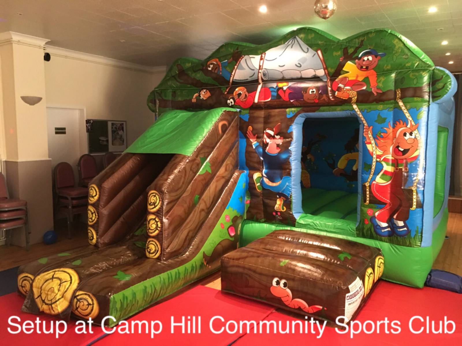 We are still updating details for this hall but it will fit any of our children's castles and Soft Play setups in the main hall.