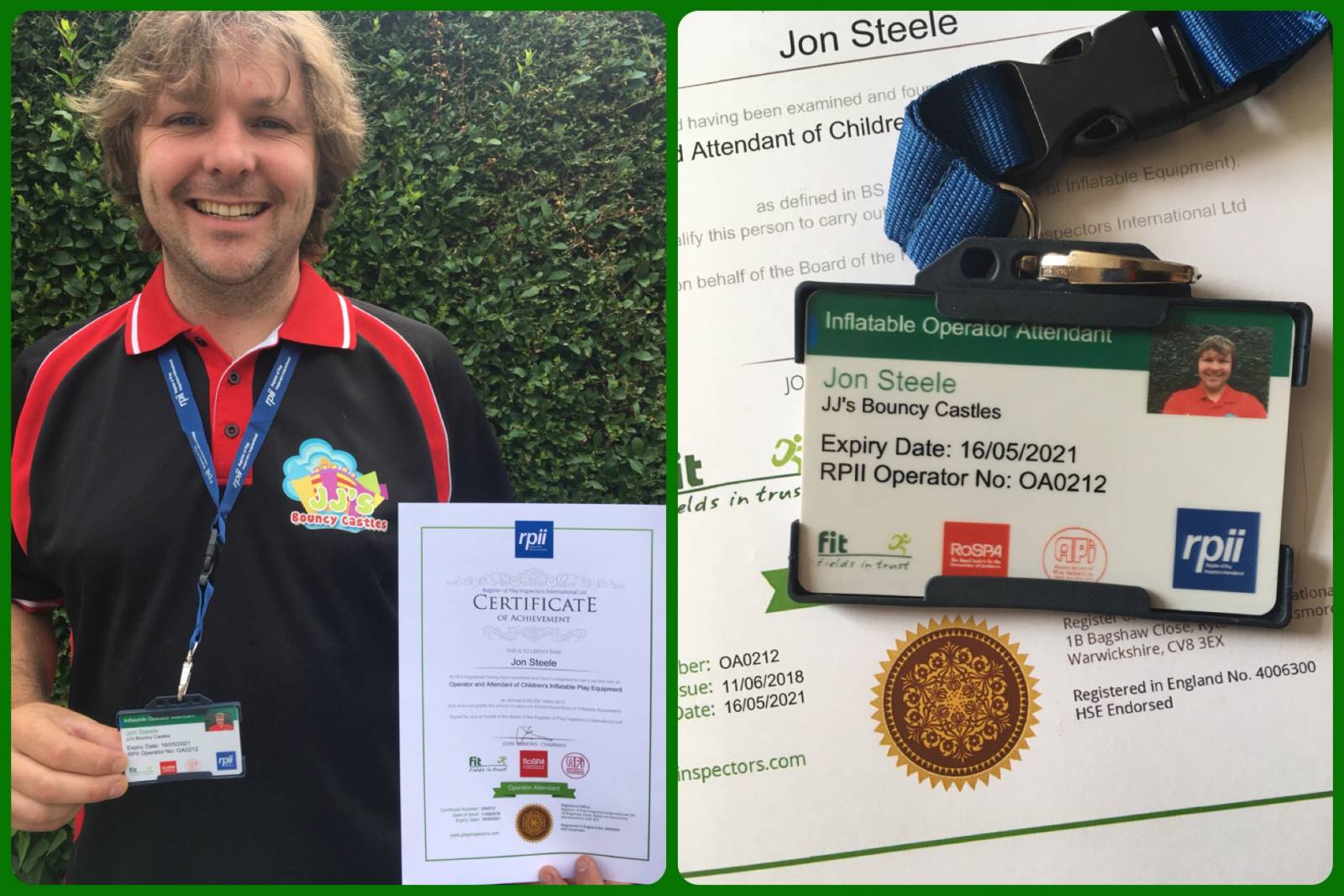 In January 2024 JJ's Parties & Events were lucky enough to be invited to be one of the first companies in the south of England to take the new industry Qualification, the 'PIPA Operators Course'. It's all part of the new standard of operating which is slowly but surely putting the cowboys out of business so we are all for it. There were two exams to sit at the end of the course and we are thrilled to say Jon achieved 100% in both of the courses. This is similar to the RPII Inflatable Operator course for which Jon is already accredited. Well done Jon!