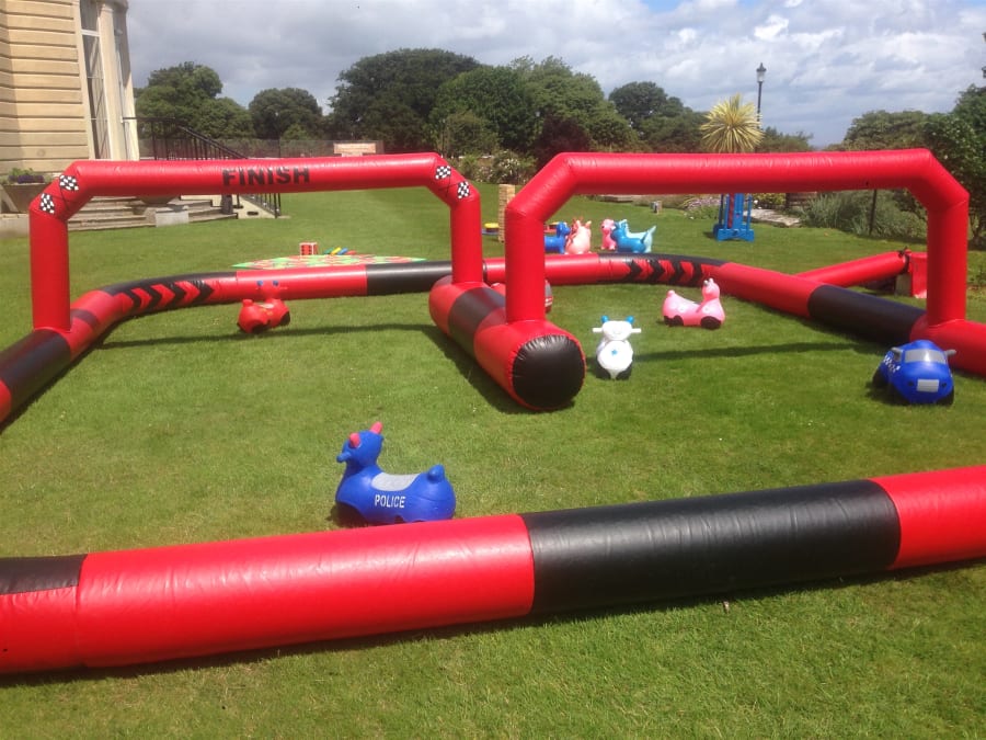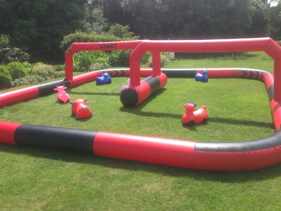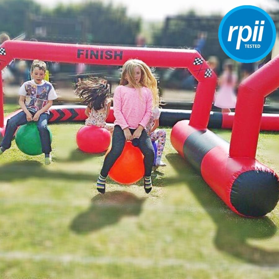 This Inflatable Racetrack, as with all of our units is tested annually to both RPii or PIPA standards which follows the european standards as set out in en14960: 2013. This standard is overseen by the Health and Safety Executive of England and is the standard that should be used by all hirers. Our Public Liability Insurance covers our safe setups with up to £5 million. All of our electrical equipment is annually PAT tested to ensure their safety for hire to the general public and is also subject to regular visual inspection by ourselves. Safety is key in everything we do, we pride ourselves on it. That's why when we drop off and setup your inflatable we also provide you with easy to understand safe use guidelines which we talk through with you to ensure safe operation of the inflatable whilst in your care. If you would like to know more about our Space Hopper Racetrack for hire or would like to make a booking then please feel free to contact us. You can also book here online using our automated booking system. We receive notification for every online booking we receive immediately that it comes in. Alternatively you can email us at info@jjsiow.co.uk