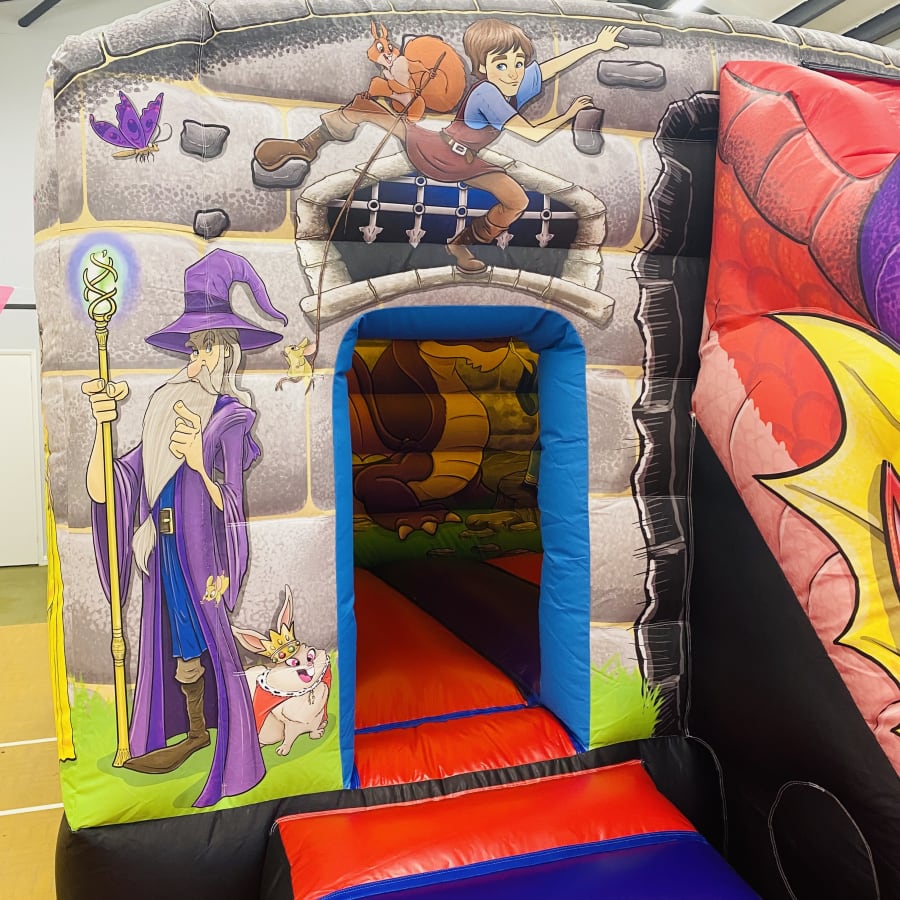 Available to hire Island wide across the Isle of Wight. Our Camelot themed Castle with Dragon head Slide is a head turning must at your child’s party. Made by one of the worlds leading inflatable manufacturers right here in England. Hand painted throughout with large viewing windows either side so it’s great for supervision. Perfect for Medieval, Prince & Princess, Wizard and Harry Potter themed parties! Great for Halloween parties and events. Wow your guests with our stunning new castle at your party.