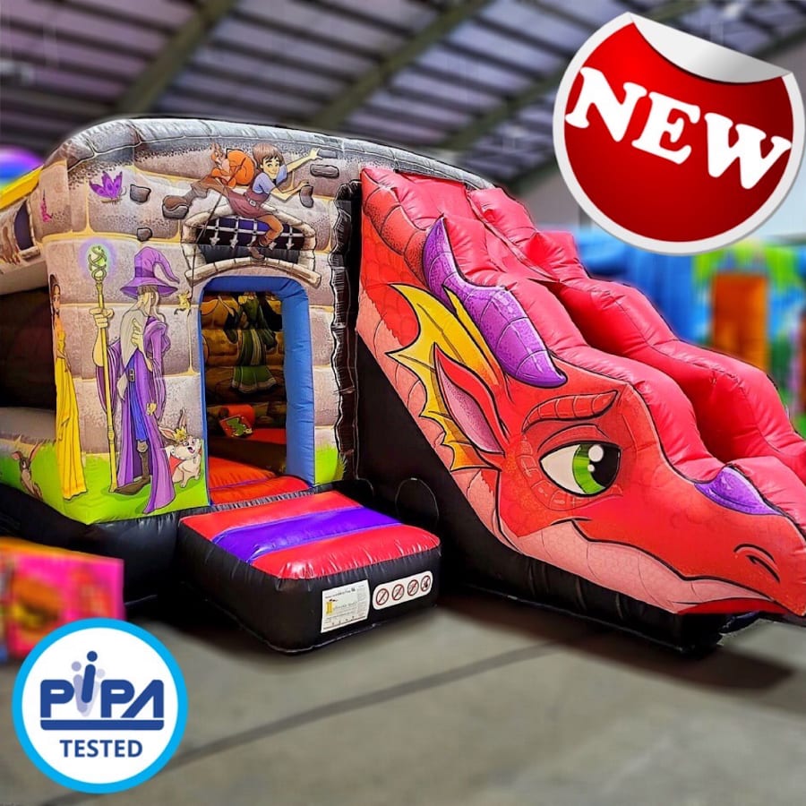 This Camelot themed castle with Dragon head Slide as with all of our units is tested annually to both RPii or PIPA standards which follows the european standards as set out in en14960: 2013. This standard is overseen by the Health and Safety Executive of England and is the standard that should be used by all hirers. Our Public Liability Insurance covers our safe setups with up to £5 million. All of our electrical equipment is annually PAT tested to ensure their safety for hire to the general public and is also subject to regular visual inspection by ourselves. Safety is key in everything we do, we pride ourselves on it. That's why when we drop off and setup your inflatable we also provide you with easy to understand safe use guidelines which we talk through with you to ensure safe operation of the inflatable whilst in your care.