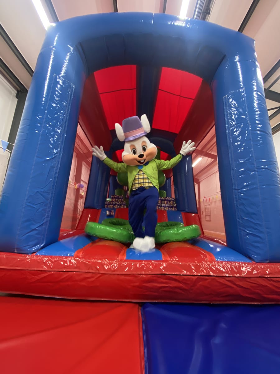 Assisted hire - Hire includes the hire of one person to man 'Bouncer'. Due to the restricted field of vision of the mascot 'Bouncer' does require an assistant to help guide him at a party or event. For an additional cost an assistant can be provided but is not included in the hire price.
