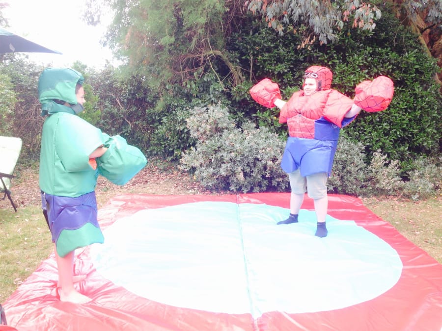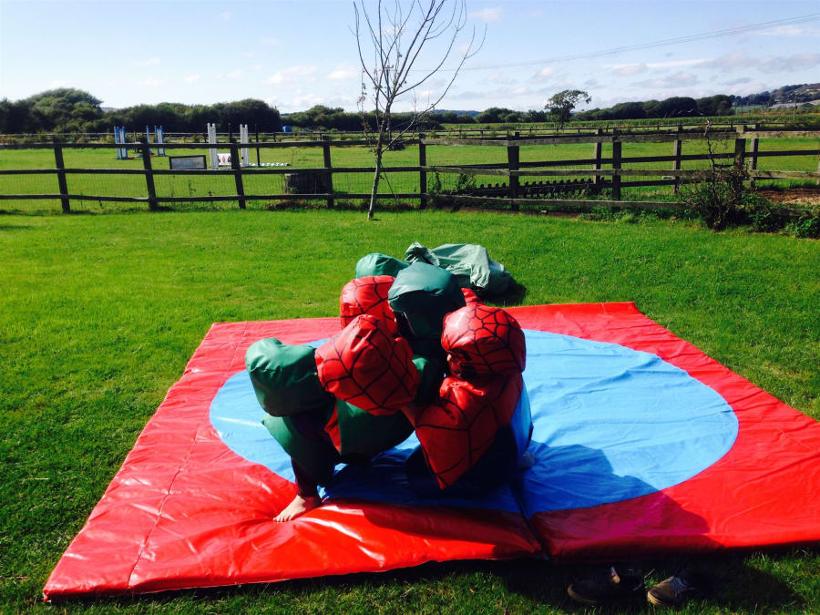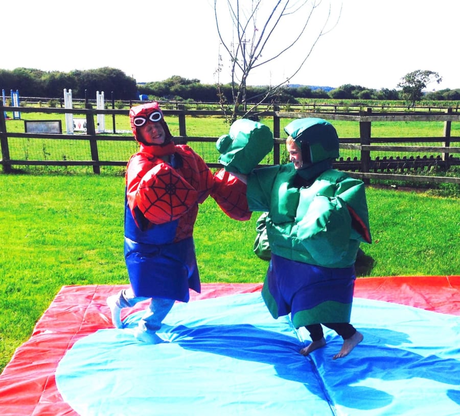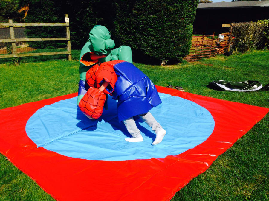 Available to hire Island wide across the Isle of Wight. Minimum order value applies. Originally when we started down the Superhero Sumo Suit road it was inevitable we would include a set of children's Sumo Suits at some point too . So we turned to the experts...our own two boys, who chose the combatants for this epic encounter and then we turned to our top quality British manufacturer to create and bring to life these costumed crusaders!