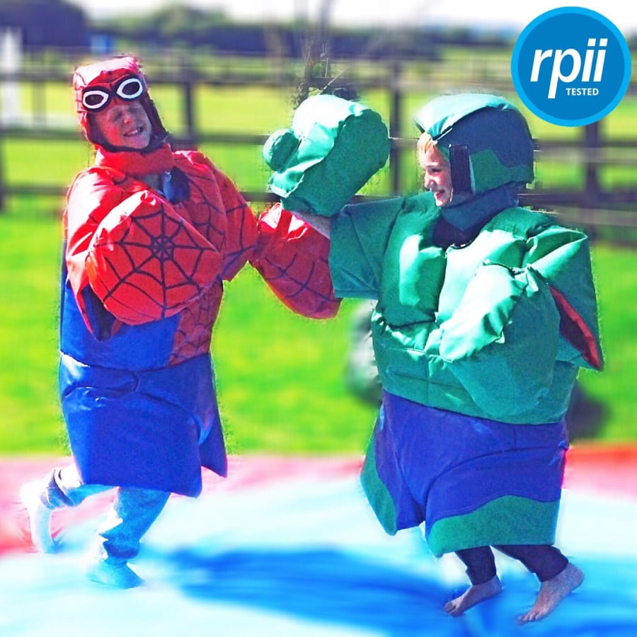 Our Superhero Sumo Suits, as with all of our units is tested annually to both RPii or PIPA standards which follows the european standards as set out in en14960: 2013. This standard is overseen by the Health and Safety Executive of England and is the standard that should be used by all hirers. Our Public Liability Insurance covers our safe setups with up to £5 million. All of our electrical equipment is annually PAT tested to ensure their safety for hire to the general public and is also subject to regular visual inspection by ourselves. Safety is key in everything we do, we pride ourselves on it. That's why when we drop off and setup your inflatable we also provide you with easy to understand safe use guidelines which we talk through with you to ensure safe operation of the inflatable whilst in your care.