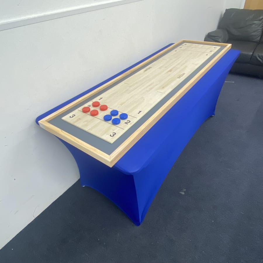 Available to hire Island wide across the Isle of Wight. Minimum order value applies. Looking for a fun and exciting game to liven up your parties, weddings, corporate events, or Christmas gatherings? Look no further! Introducing our Table Top ShuffleBoard, the latest addition to our game collection. With its sleek design and compact size, this game is perfect for any location and any occasion.